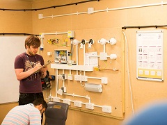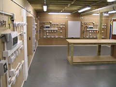 There are various wiring scenarios set up for the students to complete. In these cubicles they are taught to make a material list, plan, measure and set out works, conduit bending and installation, wiring and connections and correct wire size selection.