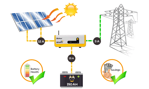 Su-Kam’s Brainy Eco is India’s best hybrid solar inverter which is perfect for your home. It functions both as a normal inverter as well as off-grid solar system because it can charge batteries through grid and solar.The home solar UPS – Brainy-is best in everything – best price, best design, best style, best features and best performance.